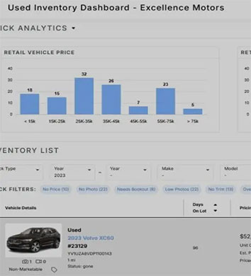 vAuto offers a data-driven, end-to-end inventory management solution for new, used, and wholesale vehicles. Its suite helps dealerships appraise, price, source, and merchandise cars using real-time market data — helping you stock the right vehicles at the right price. While powerful and trusted by many dealers, vAuto’s depth and focus on data may make it more suited to medium-to-large dealerships or those comfortable relying heavily on analytics rather than simpler, manual workflows.